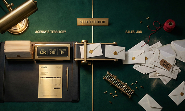 The local marketing agency doesn't handle replies at all—that's "sales' job." They send the campaigns, report the metrics, and hand off anything that comes back. You're paying them for sending, not for the work that actually converts replies into meetings.