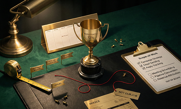 The local marketing agency reports on their deliverables: "We sent 10,000 emails, generated 300 replies, achieved 23% open rate." But they don't track what happens after the reply. Their metrics make them look good regardless of your actual results.