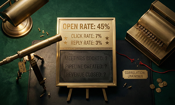 The in-house marketing team reports on email metrics: sends, opens, clicks, replies. They can tell you the campaign had a 45% open rate and a 3% reply rate. They cannot tell you whether any of those replies turned into revenue.