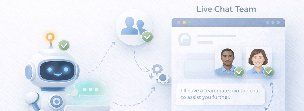 If you have a live chat team, the AI can hand off conversations seamlessly when a human is needed or requested.