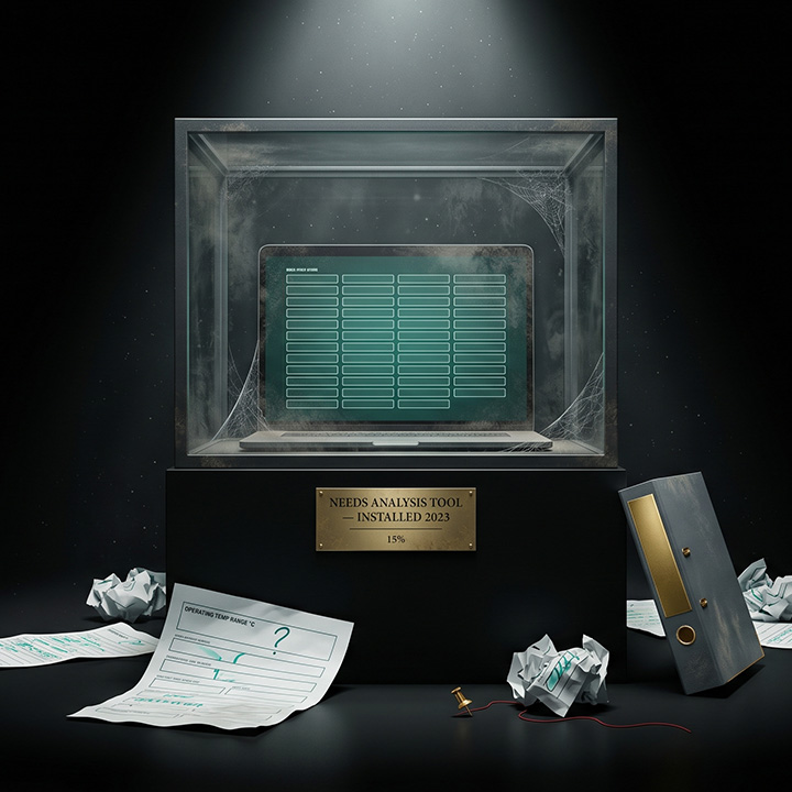 The form technically exists. The completion rate is 15%. The data quality requires hours of cleanup. Your sales team quietly goes back to emailing the spreadsheet because at least they know how that works. The needs analysis tools you bought became shelfware within six months.